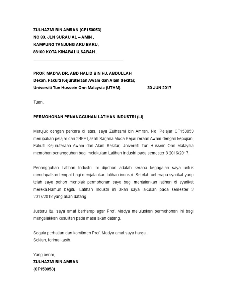 Surat Penangguhan Latihan Industri Pdf